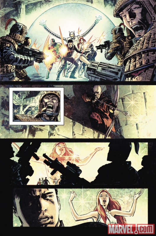 Marvel is pleased to present your first look at Atlas #3, from the red-hot creative team of Jeff Parker, Gabriel Hardman and Ramon Rosanas! They’ve entered the Heroic Age with the 3D Man at their side, but now Atlas must hope their combined might is enough to defeat a deadly threat from their past…or the Hidden City will fall. When the agent they need the most is sidelined, will Atlas make it out alive?