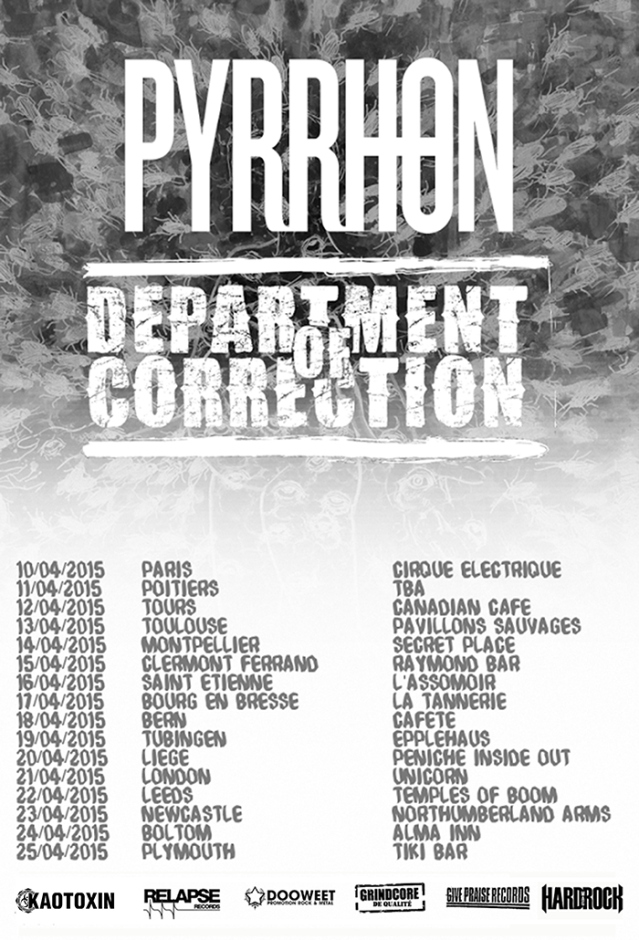 With Relapse records’ PYRRHON slated to headline the tour, this will be DEPARTMENT OF CORRECTION‘s fifth European trek. The tour will reach across five European countries (Belgium, France, Germany, Switzerland, United Kingdom) from April 10 – 25. DEPARTMENT OF CORRECTION have also recently been confirmed for Montreal’s OBSCENE EXTREME festival in August. Following the fest, the band will return to the U.S. for a series of East Coast dates.