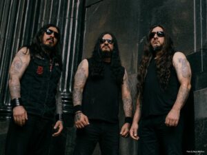 KRISIUN is (From left to right; Photo by Maya Melchers) Alex Camargo (vocals, bass), Max Kolesne (drums) and Moyses Kolesne (guitars).