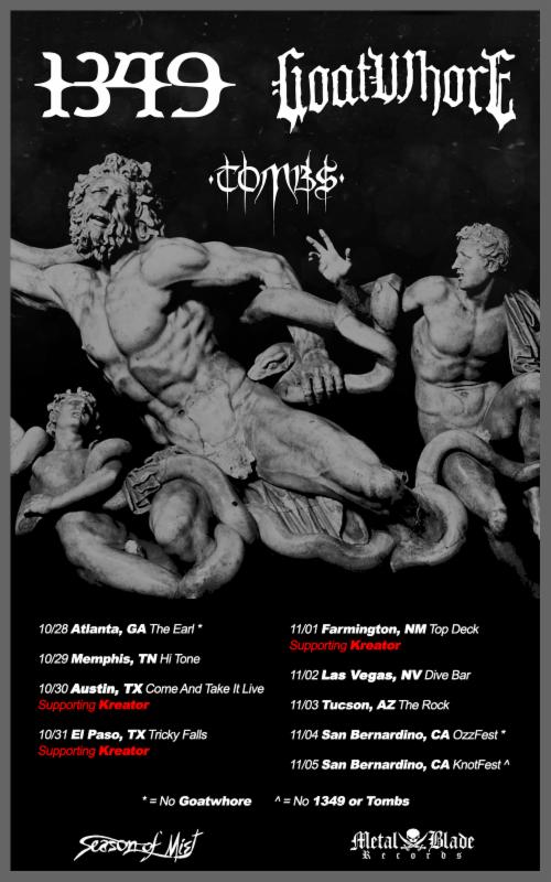 The road demons in GOATWHORE will join 1349 and labelmates Tombs for a short run of live dates leading up to their performance at this year’s edition of Ozzfest meets Knotfest in San Bernardino, California. Set to take place from October 29th through November 3rd, the short journey includes three dates supporting Kreator.